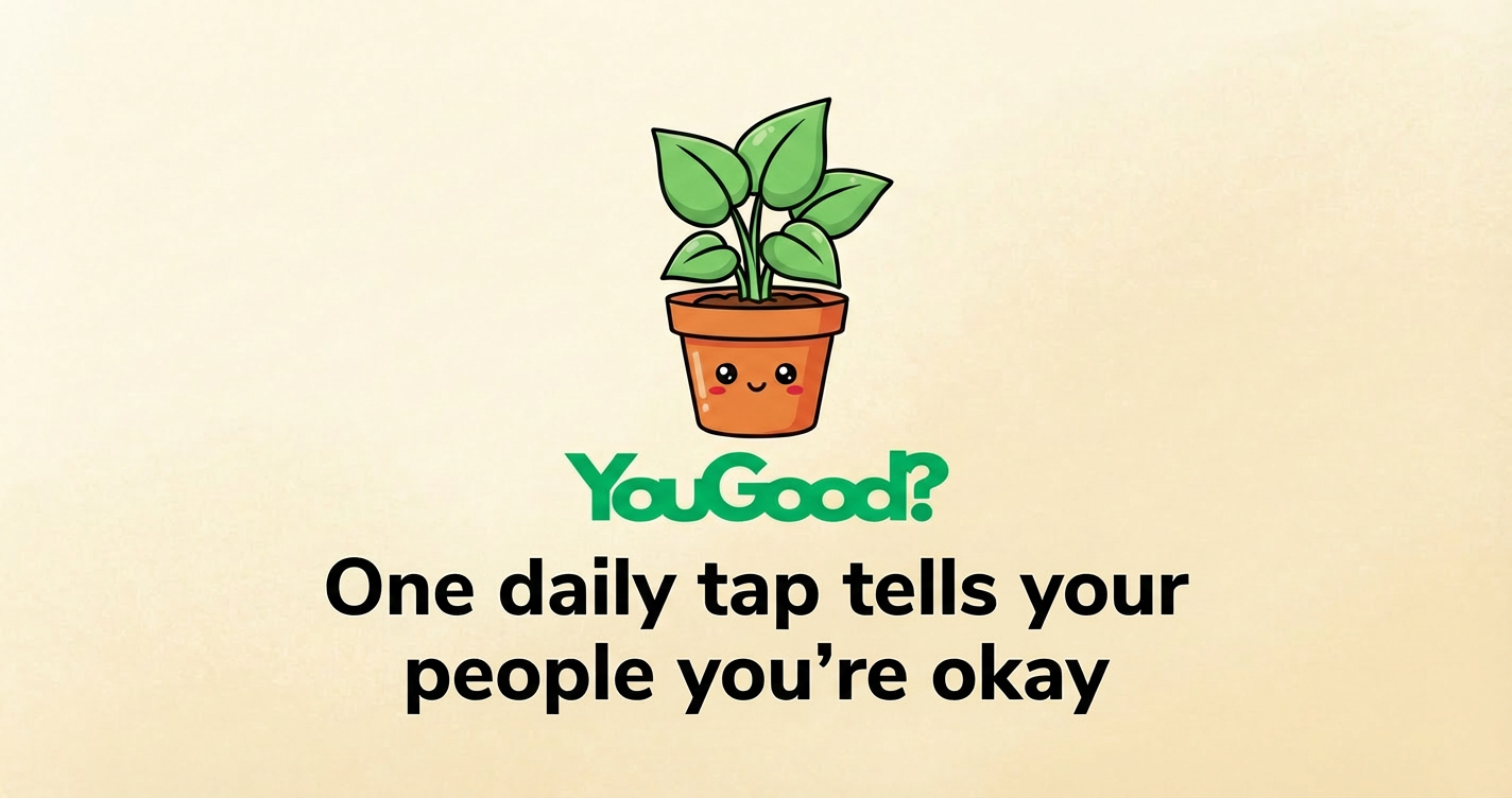 If the check-in window passes with no tap, YouGood sends a message prompting your chosen contact(s) to reach out.